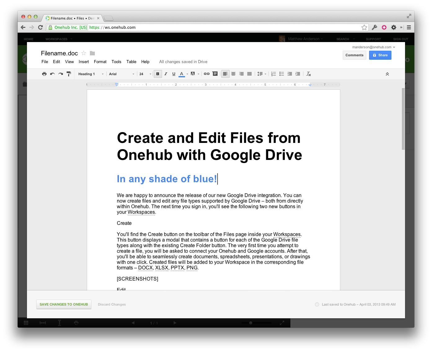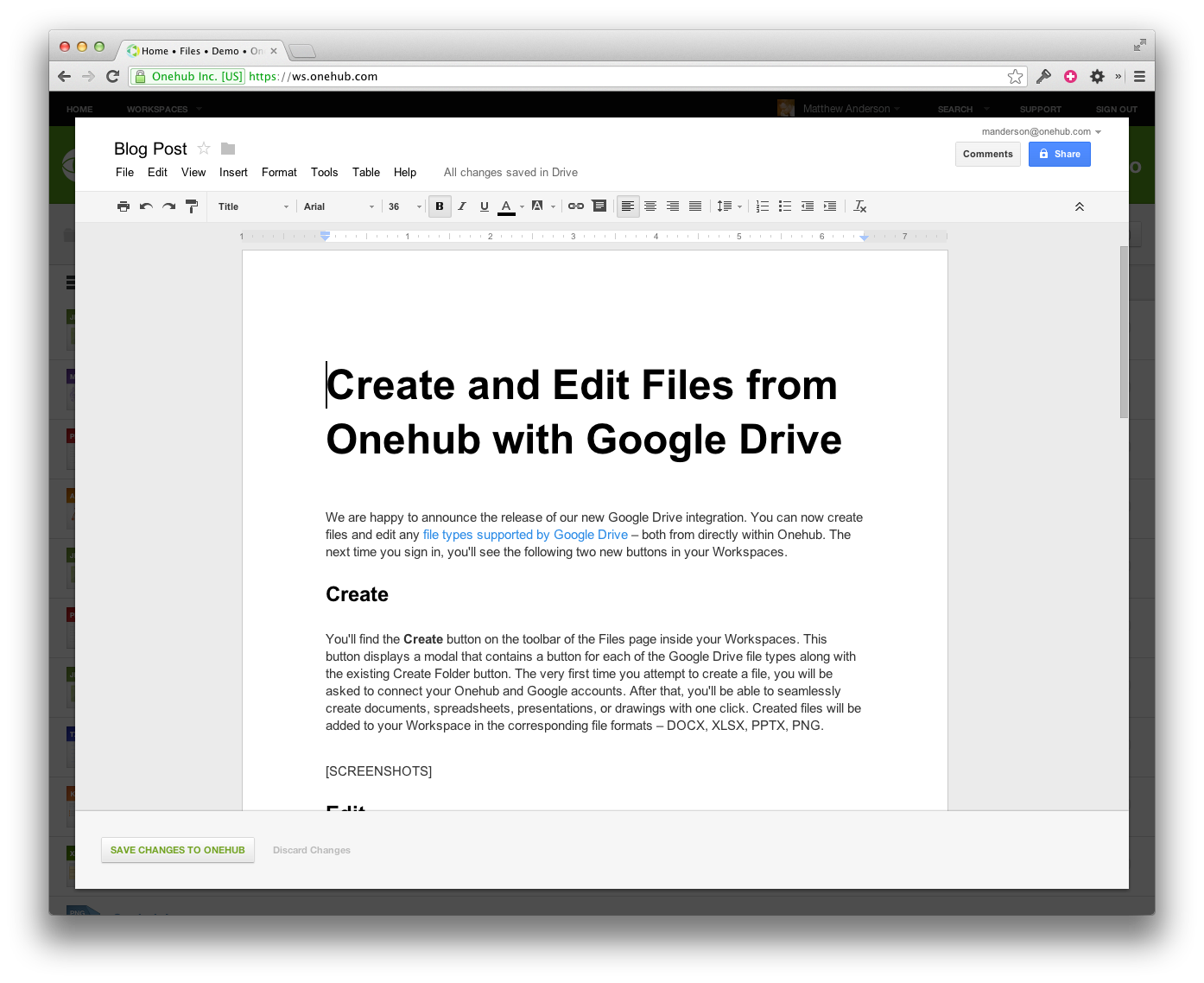 Create and Edit Files from Onehub with Google Drive